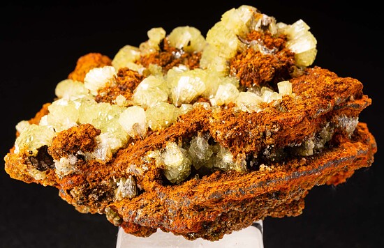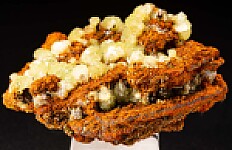 Beautiful display quality Adamite specimen from Mapimi. Although these are considered 'common', they are among the world's best for the species and should not be overlooked. This is a good example with a large, flat display face covered with lustroud crystal clusters. Valued at $250.