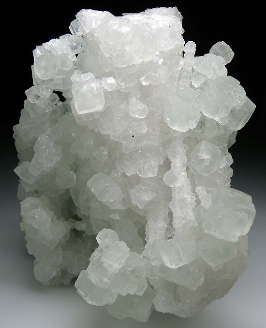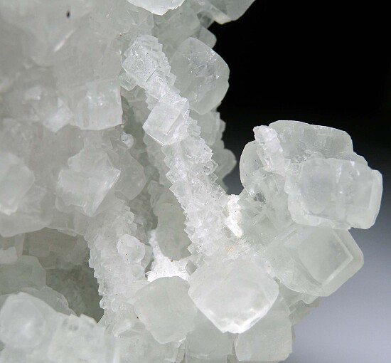 Light green Fluorite crystals from China that form tall stacks of stalactitic clusters. An interesting and large display piece that can be displayed from multiple sides. The stalactites rise up from the base and create multiple open gaps between the crystal groups with smaller stalactites bridging the gaps between larger groups. Fluorite stalactites are rare in general with most I've seen being smaller individual stalactites from a couple localities in China. This large group of multiple stalactites is both uncommon and impressive.