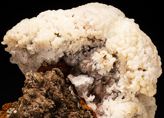 Coral-like mound of white Calcite crystals from the Juanita Mine in New Mexico. The Juanita Mine was an old lead and zinc mine that closed in 1937 and was the oldest claim in the Kelly region. The Calcite is fluorescent (greenish yellow).