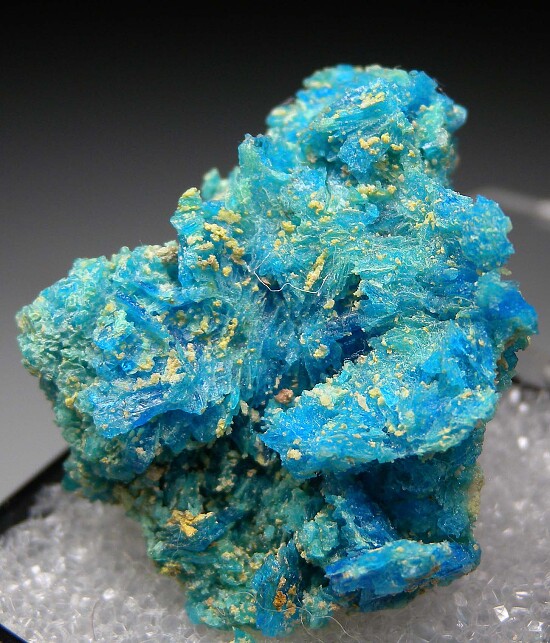 Crystals of vibrant blue Krohnkite from Chile. The crystals are mostly intergrown but there are a number of deep blue, translucent isolated crystals.
