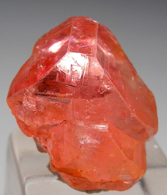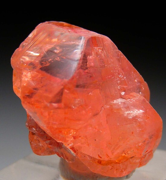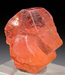 Bright pinkish orange Euclase crystals from recent finds in Bahia. An intergrown pair of crystals with lustrous faces and highly gemmy at the top. Good undamaged front and side faces with contacting on the backside.