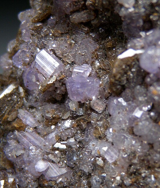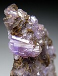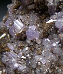 Purple Apatite crystals to 7mm on matrix with Siderite from the famous Yukon phosphate finds in the Rapid Creek area of Canada. This area is best known for it's superb blue Lazulites, but many other unusual and interesting minerals are found there too, including Apatite. Though white Apatite crystals are not uncommon (often associated with Lazulite), purple Apatite is rarely seen.