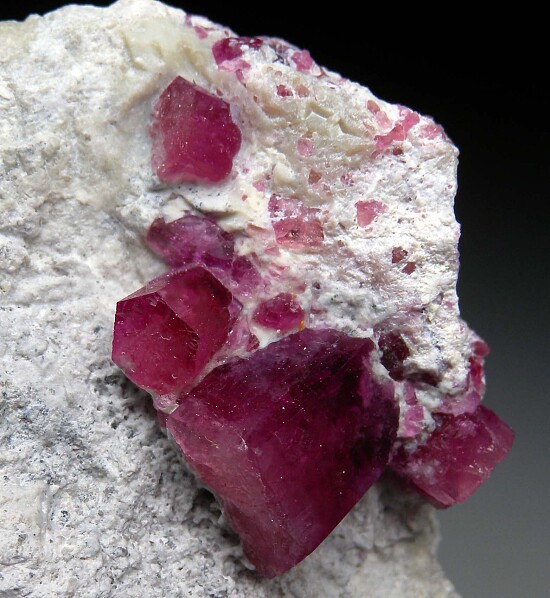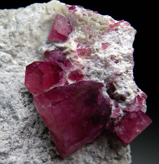 Four Red Beryl crystals on matrix. The largest crystal is a stout 1.1cm in diameter. All four are perfectly terminated and there are additional smaller crystals in the Rhyolite matrix. The crystals are translucent with areas of transparency. this could easily be trimmed into a toenail with all the crystals oriented with the terminations facing upward.