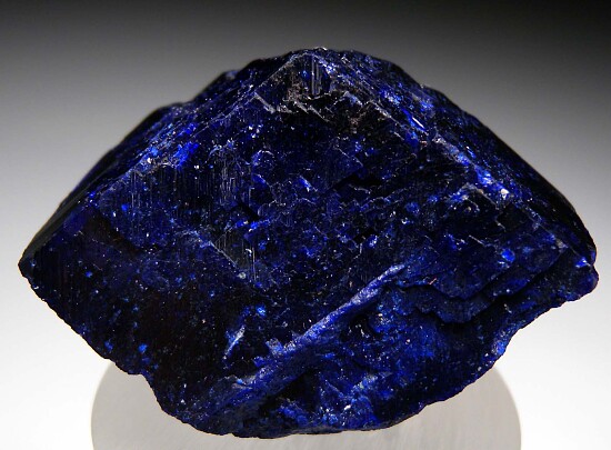 Large, complete single Azurite crystal from the Milpillas Mine. This is a floater well crystallized all around. There is some minor chipping present, but overall it's in good condition. Uncommon to find a complete, uniformly-shaped single crystal like this. Both sides shown in photos.