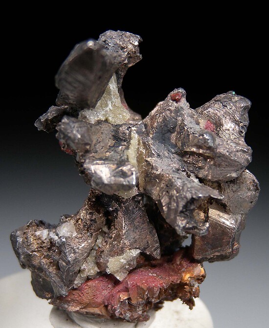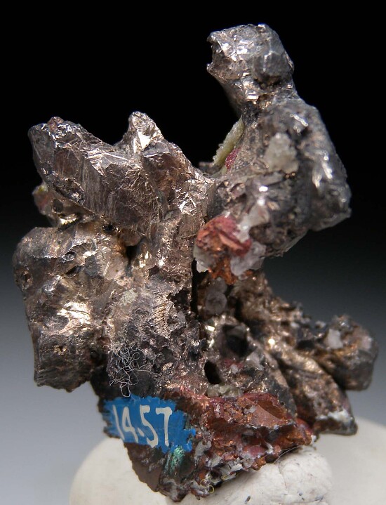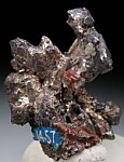 Silver crystals on Copper from the Rockland Mine in Michigan. The Silver is well crystallized and sits atop a small amount of Copper. This can be displayed from a variety of angles but I like it how it's shown in the first photo with the large 2.5cm somewhat horizontal Silver crystal facing forward. Ex. Tim Sherburn collection.