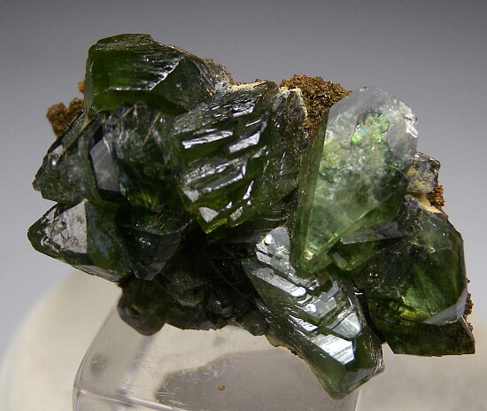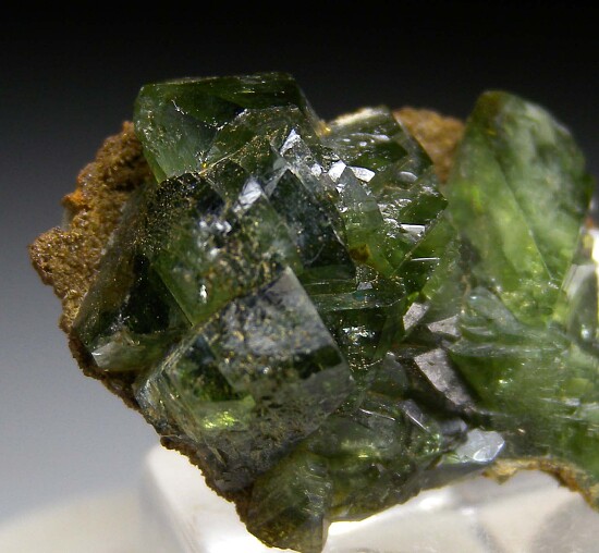 Beautiful, lustrous green Ludlamite crystals on matrix from a relatively new locality in northwestern Brazil. The crystals are bright and translucent and reach 1.1cm in size. Bright, lustrous and gemmy crystals, magnificent for the species!