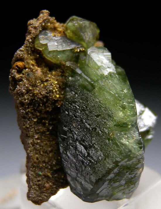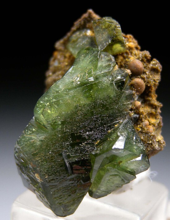 Beautiful, lustrous green Ludlamite crystals on matrix from a relatively new locality in northwestern Brazil. The crystals are bright and translucent and reach 2.2cm in size. Large, lustrous and gemmy crystals, magnificent for the species!