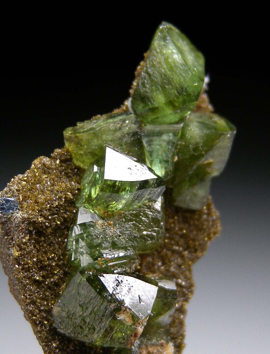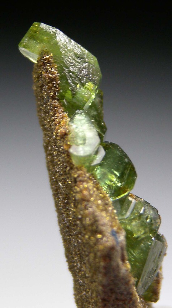 Beautiful, lustrous green Ludlamite crystals on matrix from a relatively new locality in northwestern Brazil. The crystals are bright and translucent and reach 0.9cm in size. Bright, lustrous and gemmy crystals, magnificent for the species!
