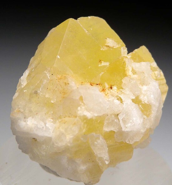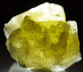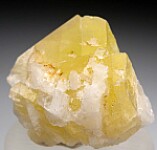 Sharp, intergrown crystals of translucent to transparent yellow Amblygonite from Brazil. Amblygonite is a rare lithium-aluminum phosphate species that is not commonly seen in fine display quality crystals. This crystal has large, flat faces and areas of gem transparency. These are not commonly seen and I bought the entire pocket that was available at this year's Tucson show. A rarity for a thumbnail collector or gem crystal collector. Valued at $200.