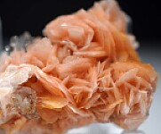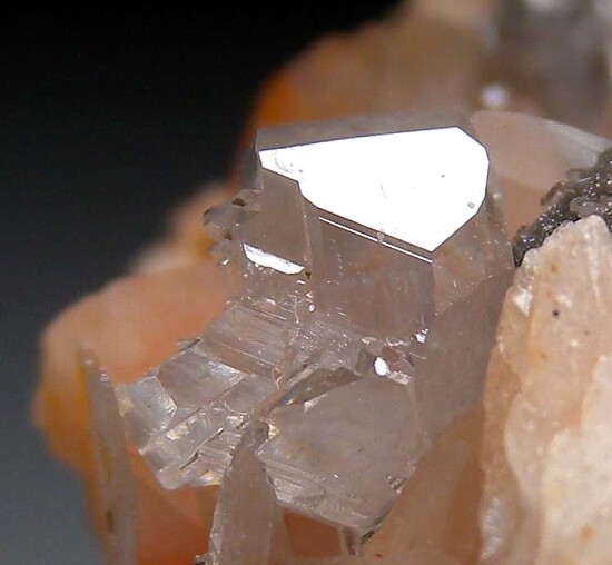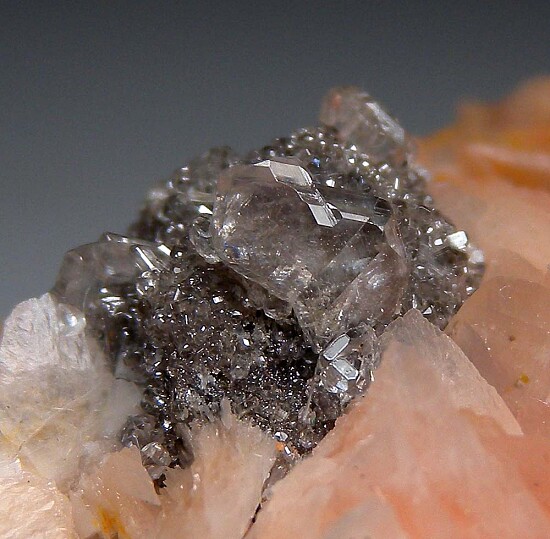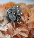 Pinkish blades of Barite crystals intergrown with Galena cubes that are partially altered to Cerussite. The Cerussite on the Galena occurs as small, sugary drusy coatings and larger, fine quality glassy crystals to 6mm.
