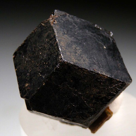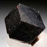 Sharp, single Andradite crystal 2.8cm wide with textbook form and no matrix. The crystal has smooth flat faces, is complete all around and nearly a floater with a small indent on the bottom where it was attached. A fine example from this well known locality.
