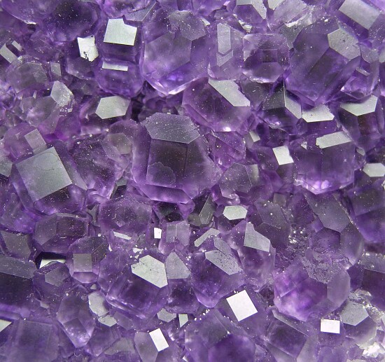 Large and colorful specimen of transparent purple Fluorite crystals from China. The crystals are outstanding with beveled form and pleasing medium purple coloration. In excellent overall conditiion and valued at $600-$800.