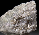 Rich specimen of Calaverite, a rare Gold telluride mineral, from Cripple Creek. Abundant Calaverite visible on all sides with individual crystals to 5mm.