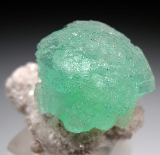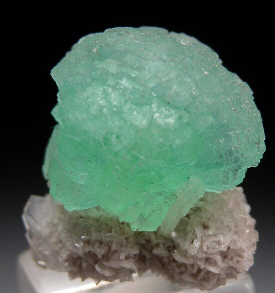Spherical cluster of translucent green Apophyllite on matrix.