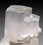 Glassy single Beryl crystal with a light pink (Morganite) body color and a blue (Aquamarine) termination. Complete all around and even has a small terminated crystal extending out the bottom. Rare specimen from an old granite quarry.