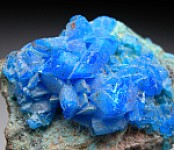 Translucent blue crystals of Liroconite on matrix with crystals to 8mm in size. There are more small areas of crystals on the sides too. Liroconite is a rare copper species with the best specimens found at this mine, which is also the type locality for the species. Wheal Gorland began operation in 1792 and the best Liroconite specimens were found in the mid 1800s. There are some dinged crystals but rare with good color.