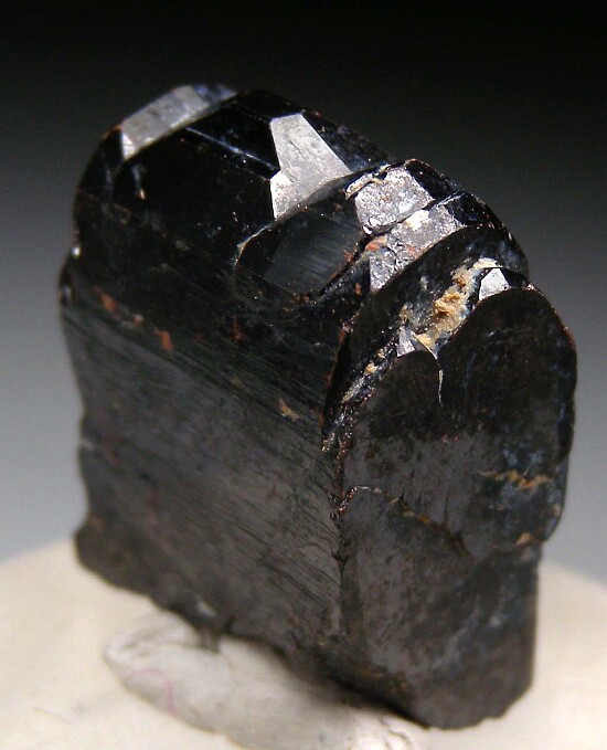 Deep red Manganotantalite crystal from the Alto Ligonha pegmatites. Complete all around with stepped termination.