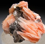 Glassy transparent Cerussite crystals with pink Barite crystals.