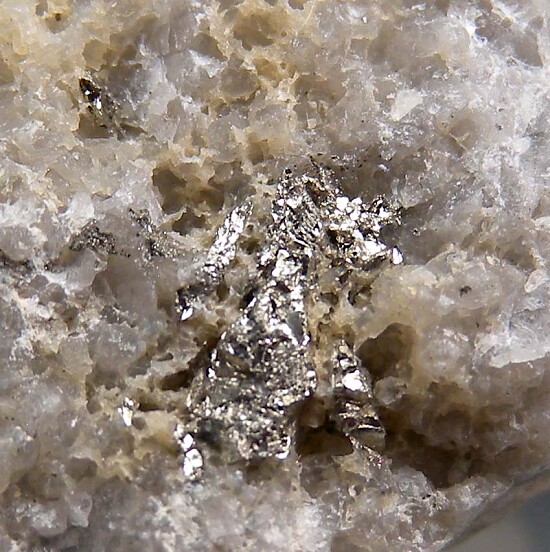 Calaverite, a rare Gold Telluride mineral, intergrown with Quartz.