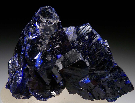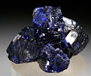 Cluster of large, blocky Azurite crystals from the now closed Milpillas Mine in Mexico. Big, thick crystals to 3.5cm in size without matrix. There is some edge wear, but it's complete all around and impressive, a value for the price.