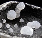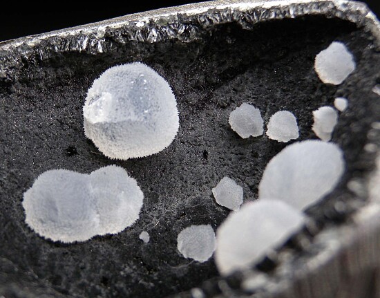 Translucent, globular masses of Epistilbite lining an open vug in basalt. The specimen was carved out of solid basalt leaving the vug intact. Epistilbite is one of the more rare zeolites from India and not often seen for sale. The base is carved flat for perfect display.