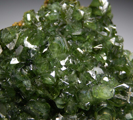Glassy bright green Ludlamite crystals on matrix from a relatively new locality in northwestern Brazil. The crystals are bright, translucent to transparent, and reach 8mm in size. Gorgeous specimen of exceptional quality for the species.