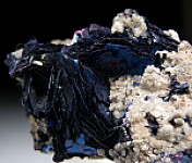 Cluster of irridescent purple/blue Covellite crystals on matrix from Summitville, Colorado. Well balanced specimen loaded with great crystals.