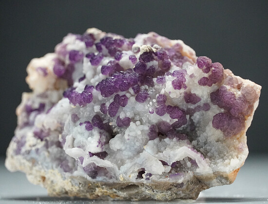 A really interesting specimen comprised of a white Quartz epimorphs partially coated by octahedral purple Fluorite crystals from a recent find in the Tombstone mining district.