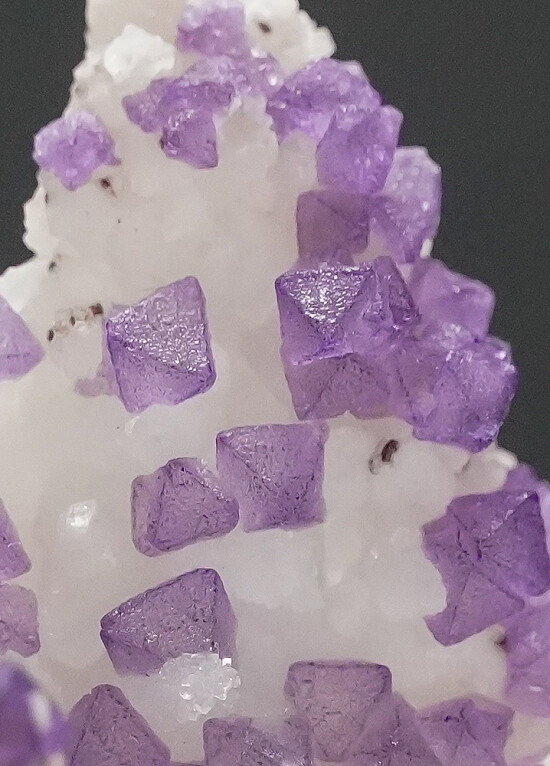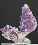 A really interesting specimen comprised of a white Quartz epimorph after Calcite that has later been partially coated by purple Fluorite crystals. The Fluorite crystals have grown on both the outside and the inside of the epimorph.