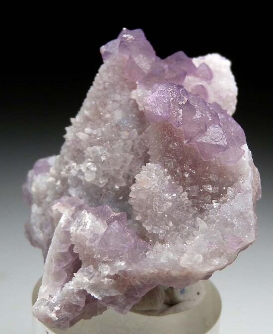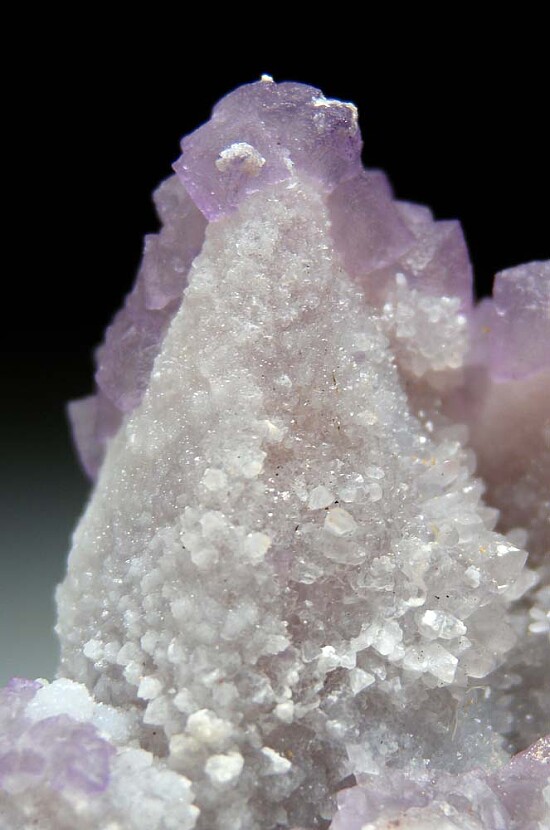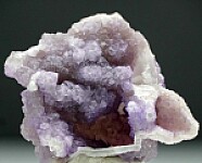 A really interesting specimen comprised of a white Quartz epimorph after Calcite crystals that has later been partially coated by octahedral purple Fluorite crystals. The Fluorite crystals have grown on both the outside and the inside of the epimorphs. My last one frim this find (and one of the best in the lot!) and was listed at $300 on my website.