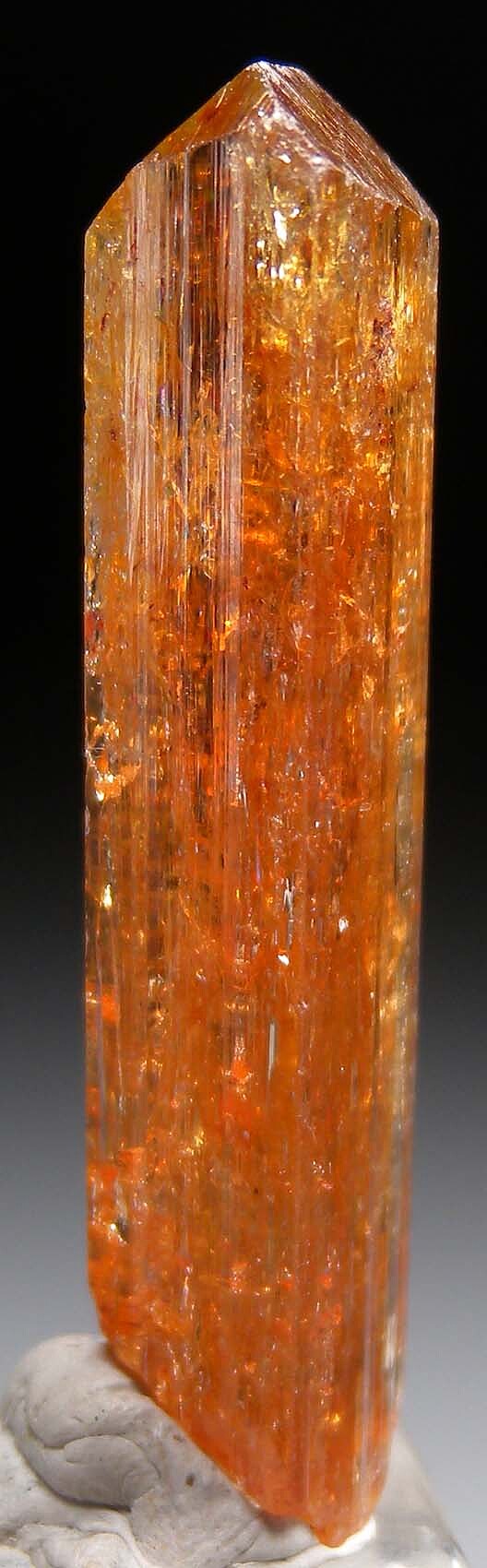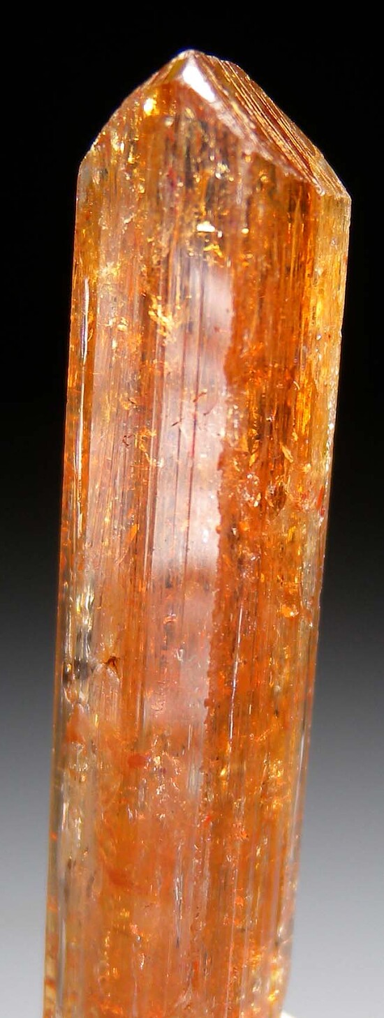 Complete, gemmy single 'Imperial' Topaz crystal from Rodrigo Silva in Brazil. Well terminated and complete all around with rich golden color. This is old stock purchased in Brazil by dealer Steve Perry back in the 1990s.