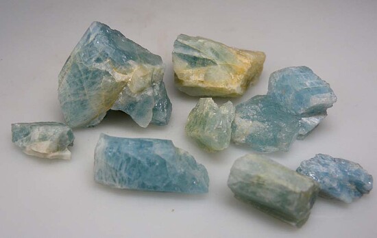 Parcel of 9 Aquamarine crystals from the famous occurrence at Mt. Antero, Colorado. Medium blue color, collected in 2013.