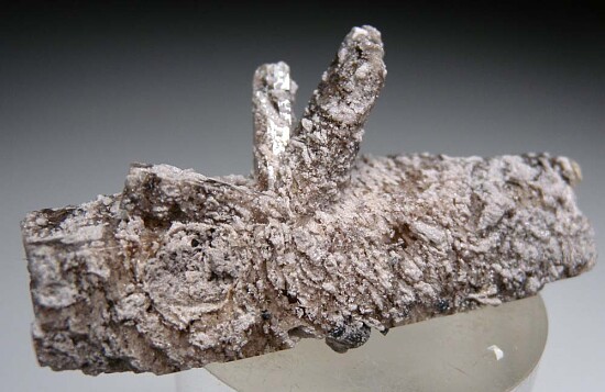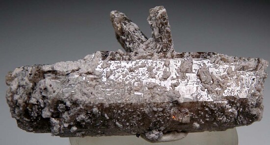 Tall single Topaz crystal with smaller side crystals sticking out the side. Though included by sand, it still shows highly lustrous, glassy flat crystal faces and areas of transparency and the side crystals make it oddly aesthetic.