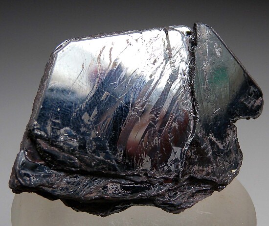 Bright, metallic cluster of Hematite from the Rodrigo Silva district in Brazil. The Hematite occurs as parallel-growth, hexagonal crystals forming what is known as an 'Iron Rose'. The specimen is complete all around with minor edge wear and bright, mirror-lustrous faces on front and back with more matte luster along the edges. This is old stock purchased in Brazil by dealer Steve Perry back in the 1990s.
