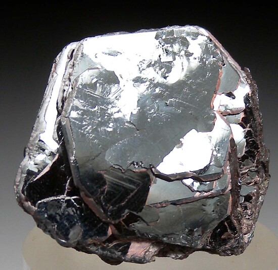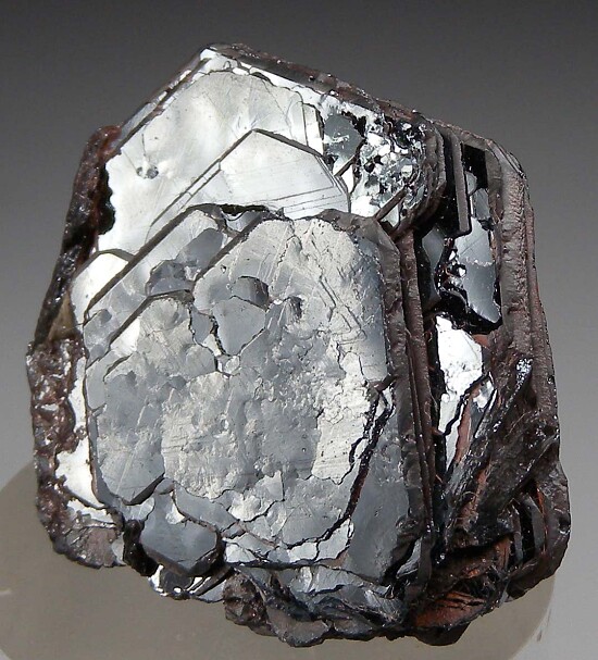 Bright, metallic cluster of Hematite from the Rodrigo Silva district in Brazil. The Hematite occurs as parallel-growth, hexagonal crystals forming what is known as an 'Iron Rose'. The specimen is complete all around with minor edge wear and some contacting on one side with bright, mirror-lustrous faces on front and back with more matte luster along the edges. This is old stock purchased in Brazil by dealer Steve Perry back in the 1990s.