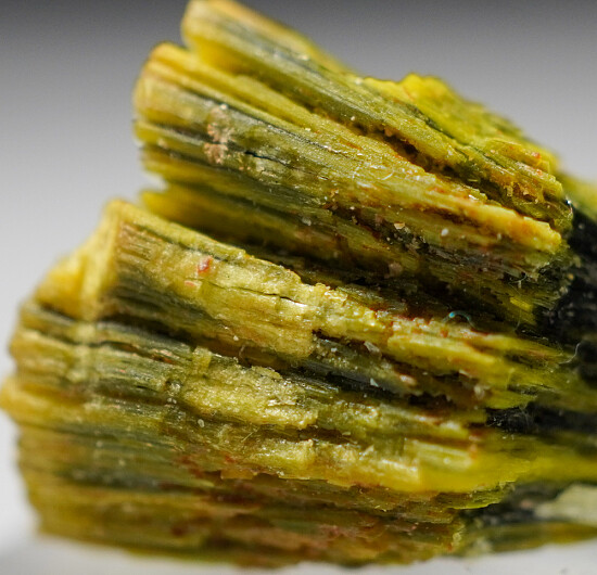Bright green-yellow crystals of Autunite from the premiere USA locality for the species. The crystals form thick clusters or 'books' representative of the mine. These were mined decades ago and are now USA classics.
