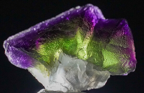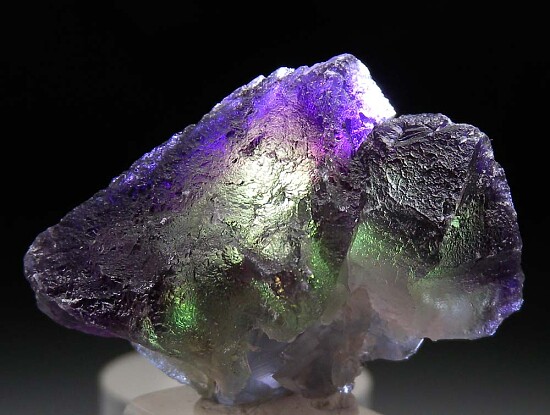 Octahedral Fluorite crystals from the Surprise Mine in New Mexico. The Fluorite is an intensely colored purple over a green core. This specimen was mined in 2014. A brief description of this find was presented in Tom Moore's report in the Jan/Feb 2015 issue of the Mineralogical Record.