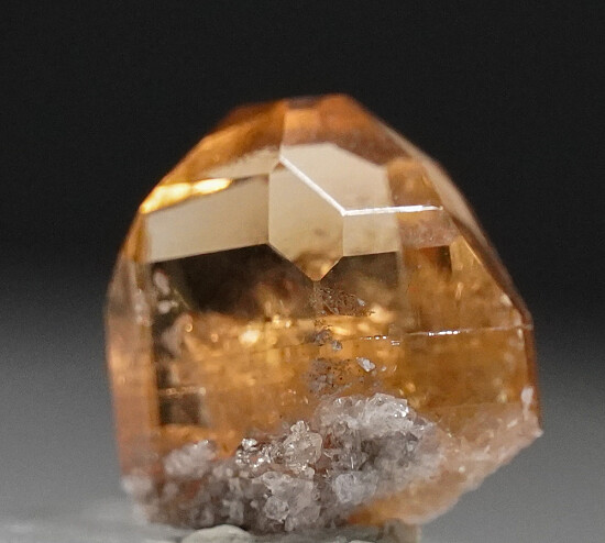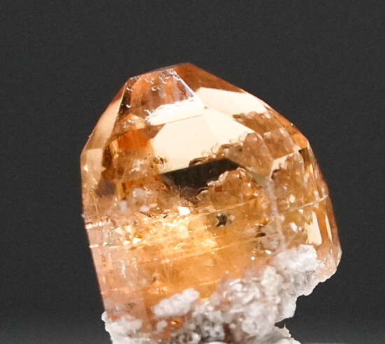 Glassy, transparent golden Topaz from the Maynard (Bixby) Mine in Utah. Complete and undamaged gem crystal that though small, is relatively thick and amazingly transparent and bright. Stunning specimen mined in 2003 by John Sulzbach. Ex. John Sulzbach collection.