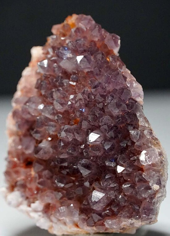 Purple Amethyst crystals from a remote California locality that occasionally produces fine Amethyst specimens. These are collected on steep mountain sides and cliffs and and not easy to get, and therefore not often seen for sale. Solid purple crystals such as these are the desirable type as many from the locality have an outer layer of milky Quartz that tends to hide the Amethyst within.