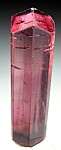Transparent red single Tourmaline crystal from recent finds in far eastern Congo. Nearly flawless, transparent top to bottom and undamaged. The lower half is a more burgundy color compared to a more raspberry red upper half. Weighs 8.29 grams.