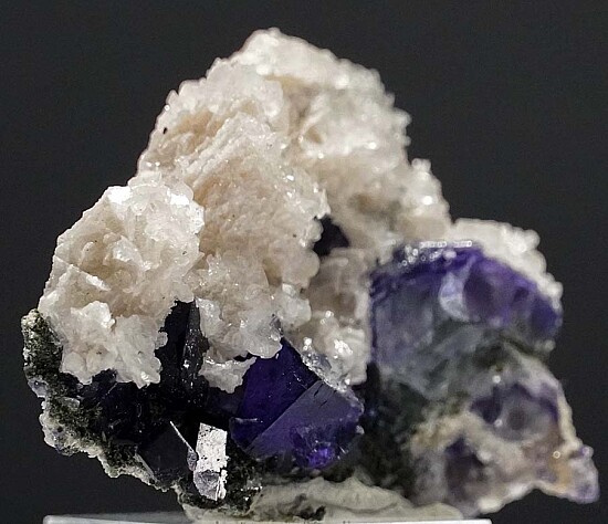 Purple Fluorite cubes with lenticular white Calcite crystals fro the Yaogangxian Mine.