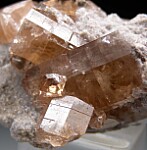 Glassy, transparent golden Topaz on matrix from the Maynard (Bixby) Mine in Utah. Over a dozen gem crystals present. Stunning specimen mined in 2003 by John Sulzbach. Ex. John Sulzbach collection.