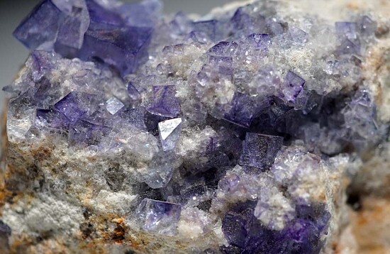 Cubes of purple/blue Fluorite on Quartz from the Blanchard Mine in New Mexico. Ex. John Sulzbach collection, collected by John in May 2014 from the Sunshine Adit #3.