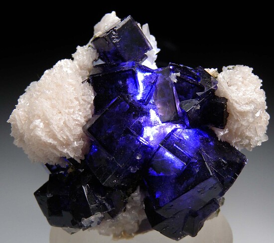 Stunning specimen of transparent purple (like grape jelly!) Fluorite crystals from the famous Yaogangxian Mine in China. The Fluorite crystals are glass-like and totally water clear (you can see right through them). In excellent condition from recent production and associated with white Dolomite and Calcite crystals.