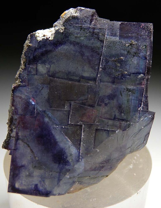 Large, glassy cubic Fluorite crystal from the Yaogangxian Mine in China. The Fluorite has a beautiful mixture of purples and blues with stepped crystal faces.