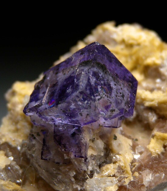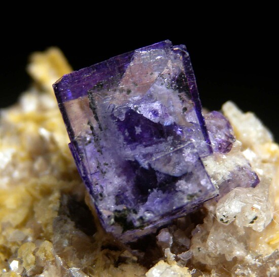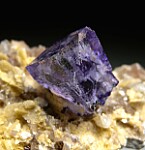 Glassy purple Fluorite cube on matrix. The Fluorite has rich coloration, glassy luster, and transparency. It is 1.8cm wide, complete all around and undamaged.