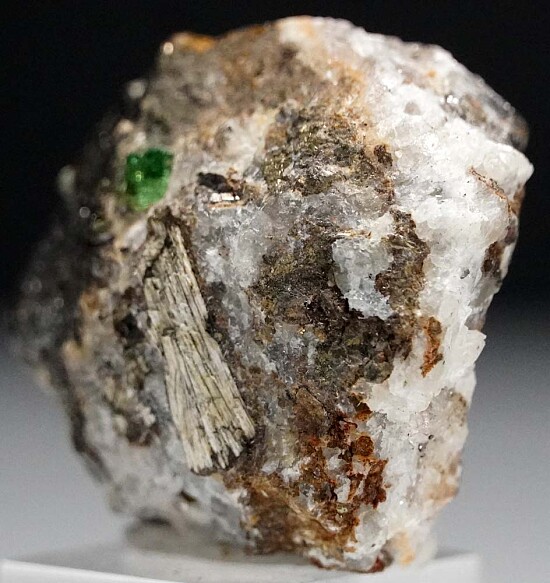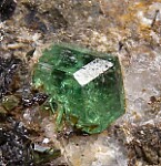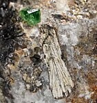 Gem quality green Grossular in a Calcite and Graphite rich matrix. The Tsavorite is 5mm wide, transparent, with great deep green color.