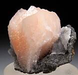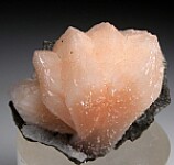 Aesthetic cluster of peach-colored Stilbite on matrix. Fan-shaped cluster with jagged ridges across the top. Complete all around and undamaged. Ex. Len Pisciotta collection.