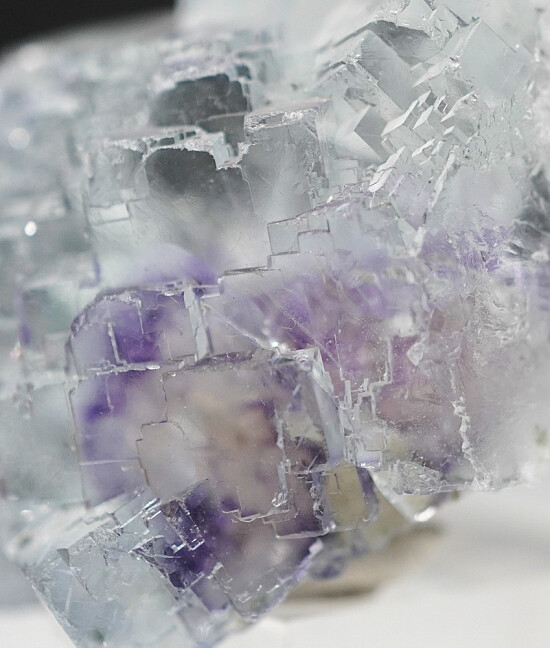 Transparent blue Fluorite crystal group from the Yaogangxian mine. This is classic for the mine with glass-like, transparent Fluorite of a light blue color with a purple phantom deep inside. Valued at $150.