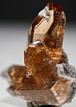 Glassy, transparent golden Topaz crystal cluster from the Maynard (Bixby) Mine in Utah. Complete and undamaged gem crystal cluster composed of three amazingly transparent and bright Topaz crystals. Stunning specimen mined in 2003 by John Sulzbach. Ex. John Sulzbach collection.